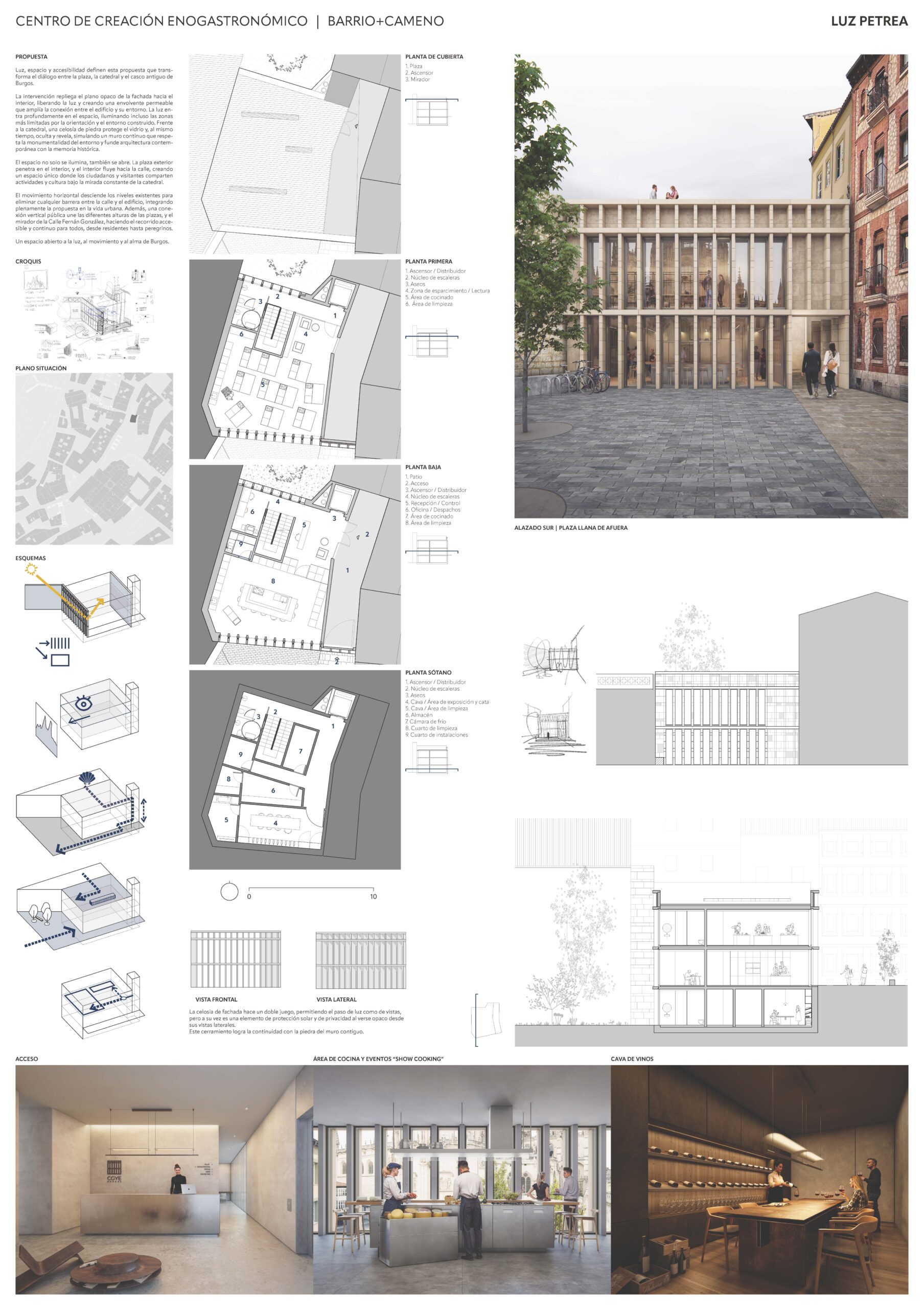 Barrio y Cameno ha sido elegido para la realización del Centro de creación enogastronómico de Burgos con una propuesta definida por la luz, el espacio y la accesibilidad, que transforma el diálogo entre la plaza, la catedral y el casco antiguo de Burgos.
